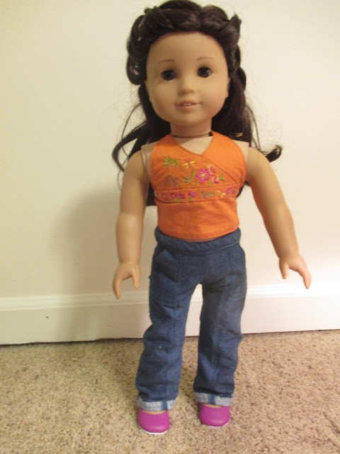The collar on the Corolle doll's onesie is a bit too clownish for me, and I like clowns. Just not on baby clothing. I have been considering trying to sew her something new. It's tricky to figure out her size because her body is so floppy.